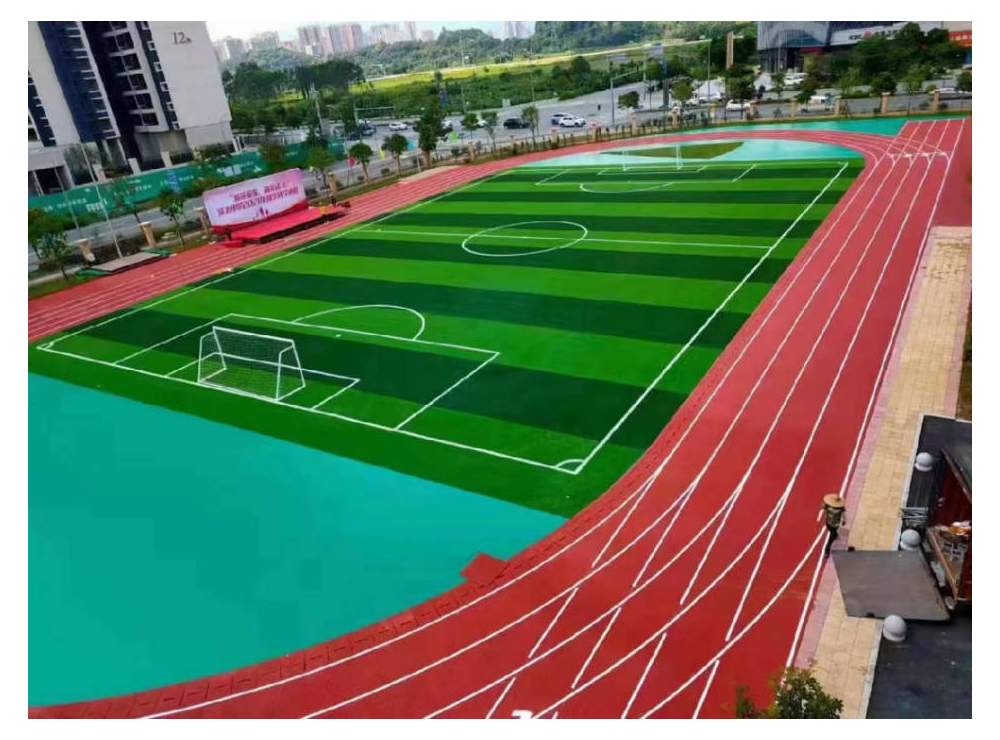 成功研發(fā)多層結(jié)構(gòu)的全塑型自結(jié)紋跑道,鋪裝了潼南中學(xué)運動場, 場地品質(zhì)獲得多方贊美。